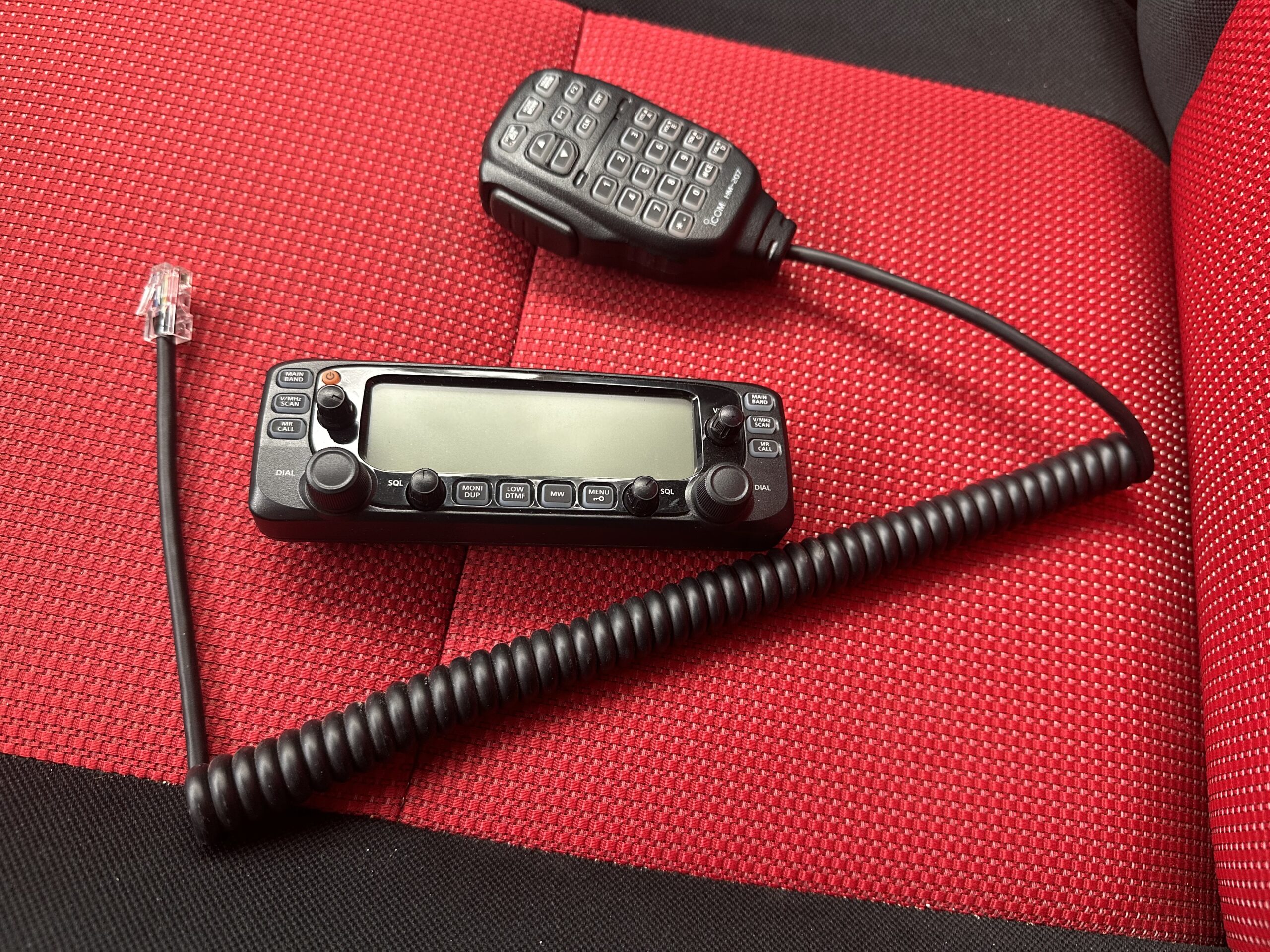 The microphone plugs in to a socket installed under the dash. The radio base unit is installed deep inside the dashboard (it never needs to be touched or moved as there’s a remote mountable head as seen in the photos.